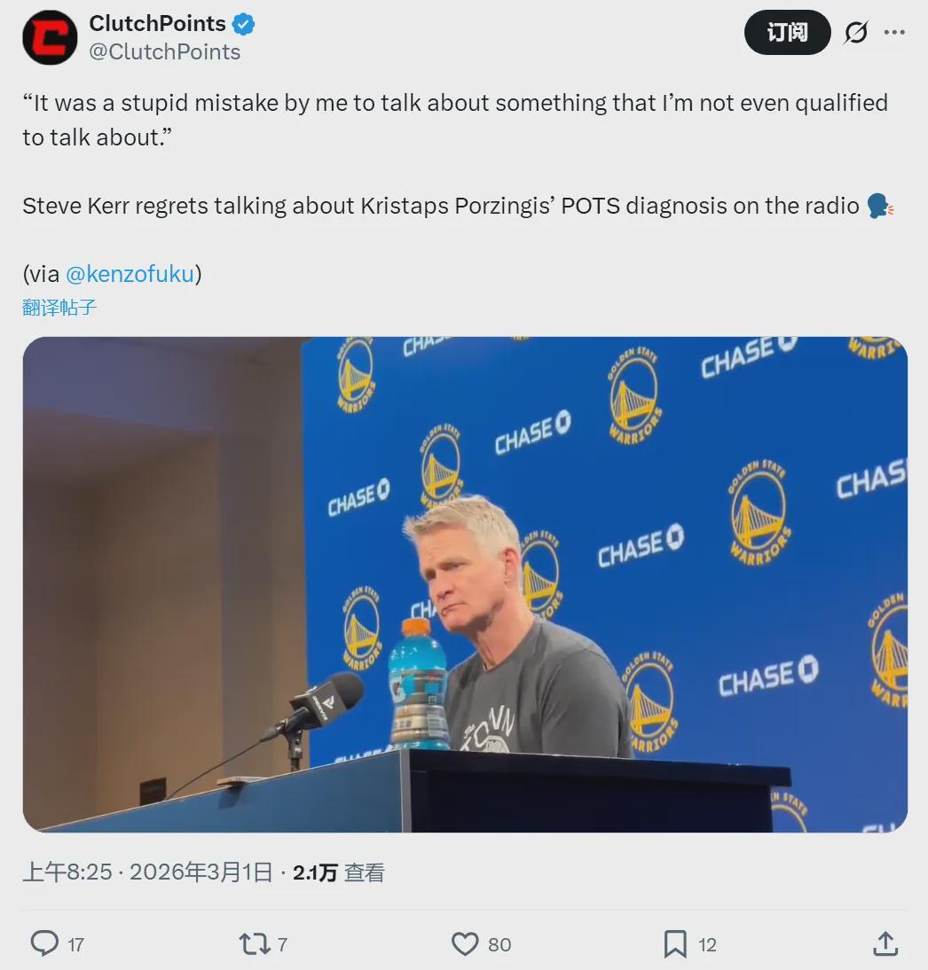 波尔津吉斯到底得了什么怪病?勇士和老鹰的交易达成后,雅虎记者Kevin O'Connor透露,波神在凯尔特人时曾被查出POTS(体位性心动过速综合征),这是自主神经功能障碍性疾病,导致运动员生理功能受限和体力下降。